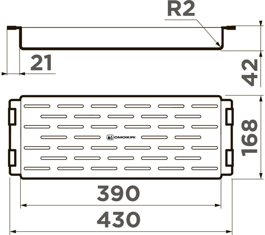 Коландер CO-06 идеально сочетается с мойками OMOIKIRI с шириной чаши от 392 до 420 мм, глубиной от 50 мм, длиной от 170 мм
