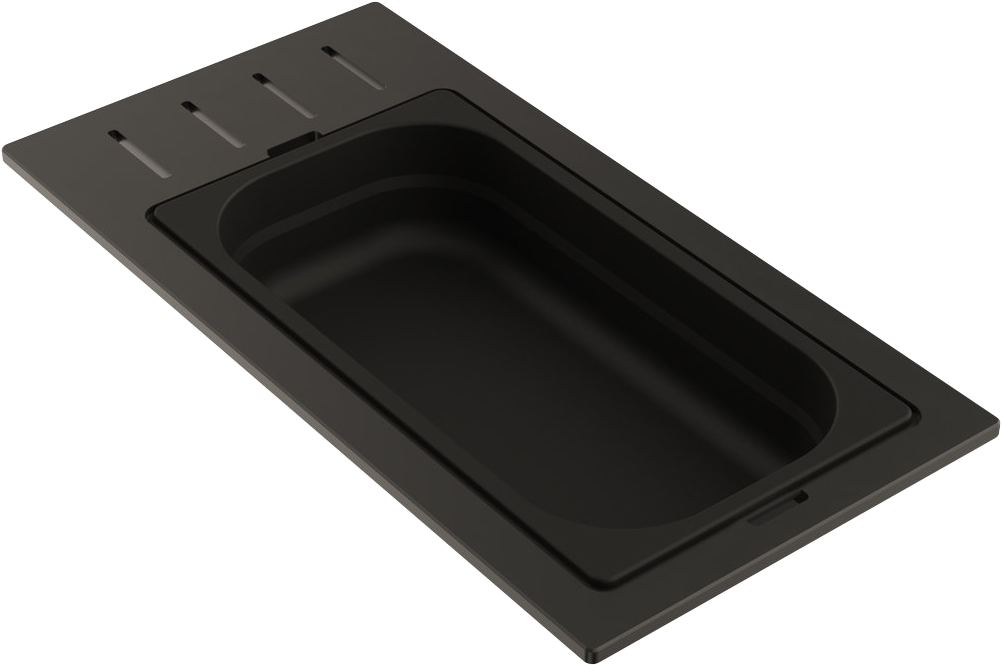 Контейнеры коллекции DC представляют собой различные конфигурации, состоящие из нескольких элементов: одной, двух или трех чаш, изготовленных из нержавеющей стали и фиксирующей подставки, изготовленной из высокопрочного HPL пластика. Чаши свободно вынимаются из пластиковой подставки и перемещаются, а конструкция подставки разработана таким образом, чтобы ее можно было удобно разместить на внутренних ступенчатых направляющих моек, коллекций SINTESI и KITAGAWA.