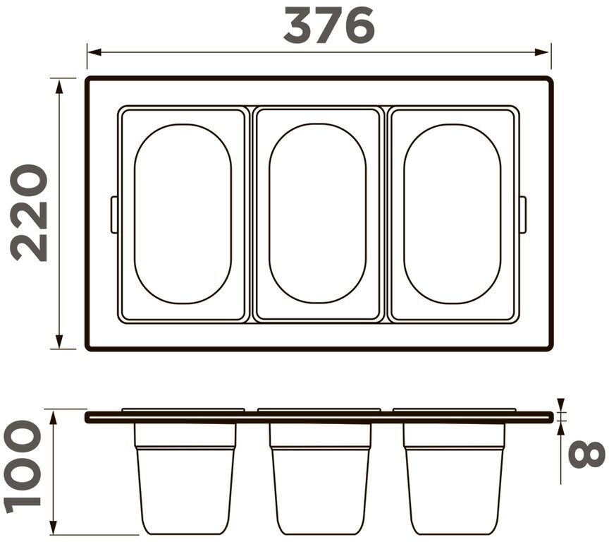 Общий размер: 376x220x65 мм