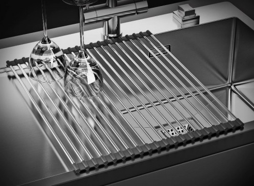 Роллмат позволяет разместить горячую кастрюлю или сковородку на поверхности мойки или увеличить пространство для сушки посуды. Коврик расстилается на крыле мойки или на столешнице. Роллмат Omoikiri закрывает практически всю чашу мойки, что позволяет использовать большее пространство для работы. Легко сворачивается в компактный рулон и занимает мало места при хранении.
