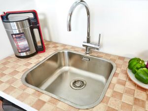 Самый простой и традиционный вариант – мойка с одной чашей. В этом случае лучше выбирать модель повместительнее. Более удобными являются полуторные раковины, в которых одна чаша меньше другой. Большая обычно используется для мытья посуды, а маленькая – для овощей, фруктов и разморозки продуктов. В маленьких кухнях установить такую модель не всегда удается. Но можно поставить мойку в углу – тогда она займет меньше места. Правда, работать возле нее вдвоем будет неудобно.