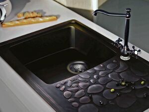 Самые большие недостатки моделей из композитных материалов – их высокая цена и сложность монтажа. Самостоятельно с установкой не справиться – придется приглашать мастера. Зато разнообразие цветов и форм позволяет вписать мойки в кухонный интерьер любого стиля.