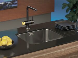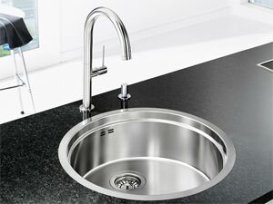 Небольшие мойки любых типов редко имеют отверстие под смеситель. Его лучше врезать непосредственно в столешницу, ведь чаша и так имеет небольшие габариты. Некоторые производители включают в комплект декоративную накладку, выполненную в том же стиле, что и сама мойка, либо предлагают оригинальные комплекты из раковины и смесителя. В последнем случае стоит учесть рекомендации изготовителя.