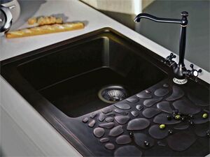 Особого внимания заслуживают врезные модели с крылом. Крыло – это продолжение рабочей поверхности раковины, имеющее рифленую форму и располагающееся с одной или с обеих сторон. Крыло не только защищает столешницу от воды, но и служит местом для сушки посуды.
