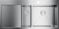 В серию Akisame входят как компактные квадратные мойки, так и широкие модели с двумя чашами и крылом. Одночашевые раковины хоть и небольшие по размерам, но довольно вместительные и подходят для маленькой или средней семьи. Двухчашевые модели включают основную чашу и фруктовницу, а боковое крыло имеет минимальный уклон: на такой поверхности и посуда устойчива, и вода быстро стекает. В корпусе есть заготовленные отверстия под клапан-автомат и смеситель.