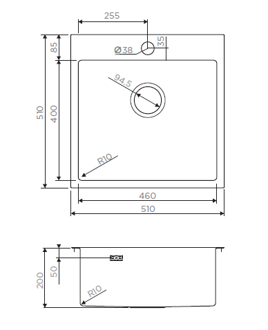 - Глубина 51 см