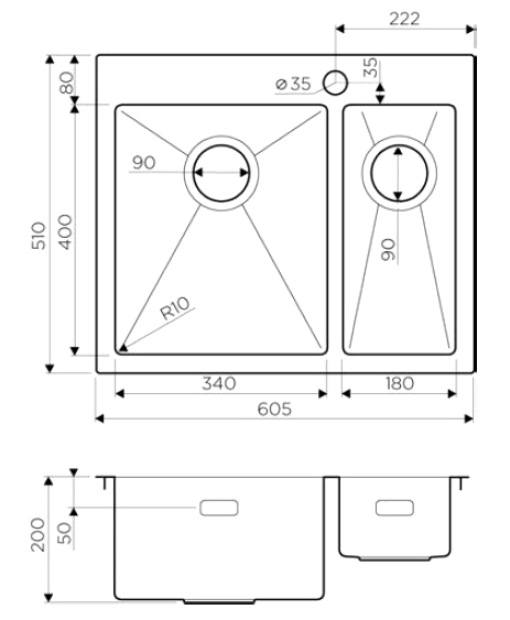 - Диаметр слива 3 ½” (90 мм)