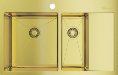 Раковина относится к серии Akisame, поэтому предназначена для врезания вровень со столешницей. Простой, но стильный дизайн способствует эффекту «монолитности» рабочей зоны. Гладкая поверхность нержавеющей стали подчеркивает минималистичное оформление мойки. Нержавейка обработана специальным PVD-покрытием, которое защищает от царапин, истираний и прочих дефектов. Модель окрашена в светлый золотистый оттенок – хорошее дополнение к интерьеру в классическом или ретро-стиле. Не бойтесь, цвет не стирается и не тускнеет со временем, даже под воздействием абразивных средств.