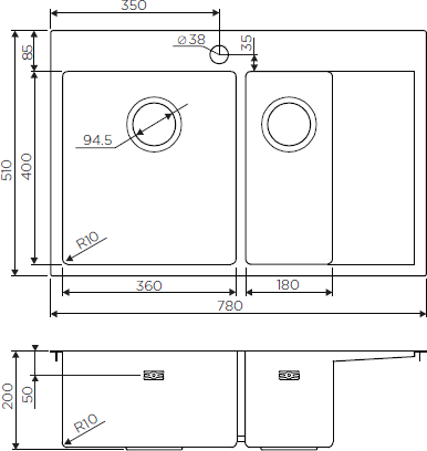 Мойка выполнена из японской высококачественной хромоникелевой нержавеющей стали с покрытием PVD