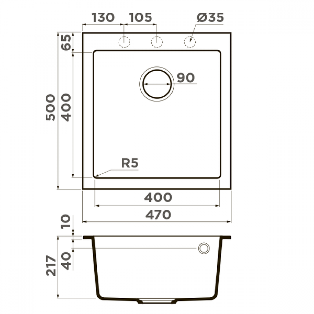 - Отверстие под смеситель Нет