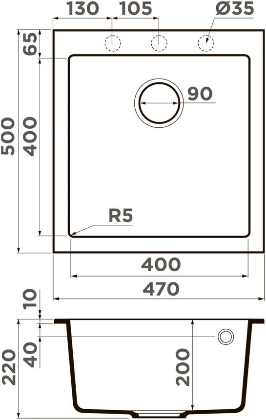 - Диаметр слива 3 ½” (90 мм)