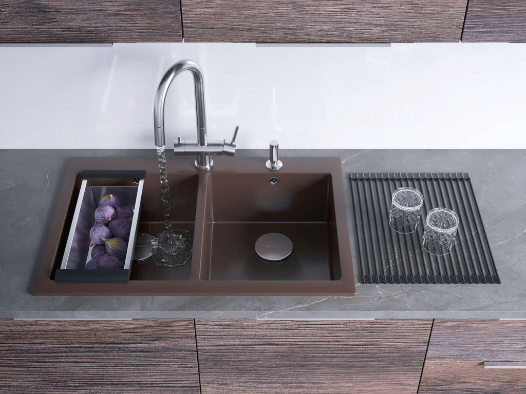 Мойка Omoikiri BOSEN 80-2 отливается из искусственного гранита TetoGranit. Модель предусматривает в себе две объемных чаши, что обеспечивает комфорт эксплуатации. Например, в одной можно замачивать посуду, а в другой споласкивать тарелки или продукты. На удобном уступе можно разместить смеситель, дозатор и другие полезные аксессуары. Материал поверхности устойчив к перепадам температур, образованию сколов и царапин, что гарантирует долговечность использования раковины.
