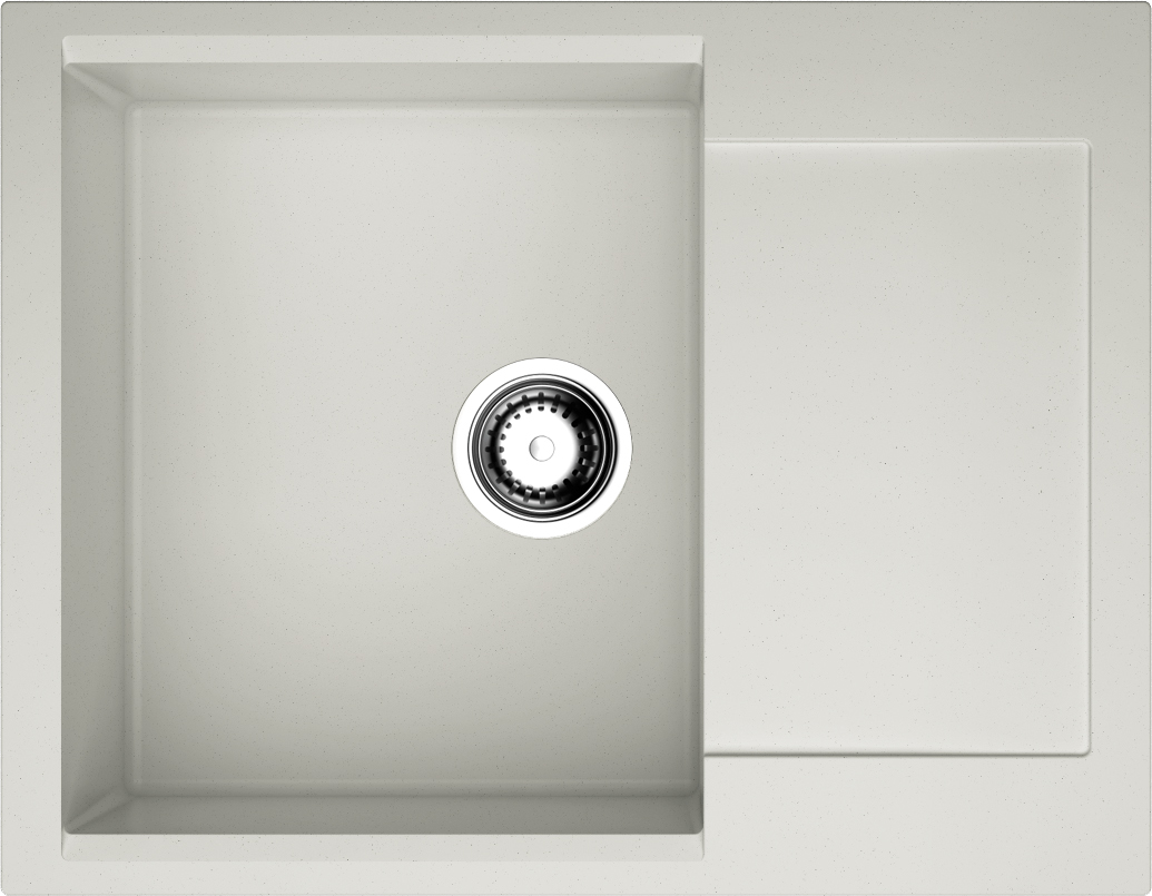 Мойка с крылом функциональнее и надежнее: на дополнительной поверхности можно сушить посуду, не опасаясь за состояние столешницы. Ширина крыла составляет около 20 см при обшей ширине корпуса 65 см – оптимальный размер для средней кухни. Кроме того, крыло удачно подчеркивает форму прямоугольника.