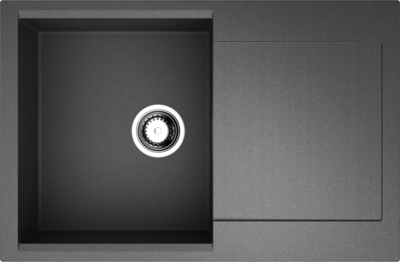 Представленная мойка привлекает глубоким черным оттеком и интересной мелкозернистой текстурой. Основной материал раковины – искусственный камень ARTGRANIT, на 80-85% состоящий из крошки натурального кварца и гранита. За счет природных компонентов мойка получается сверхпрочной, не деформируется от ударов и контакта с острыми столовыми приборами.