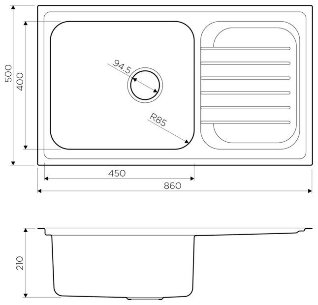 Перед вами – функциональная мойка из нержавеющей стали, предназначенная для встраивания в столешницу. Врезная раковина устанавливается в отверстие, которое соответствует ее форме и размерам (860 х 500 мм). В итоге получаем практичную и эстетичную рабочую зону, за которой легко ухаживать.