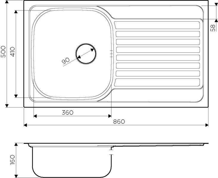 - Отверстие под смеситель Нет