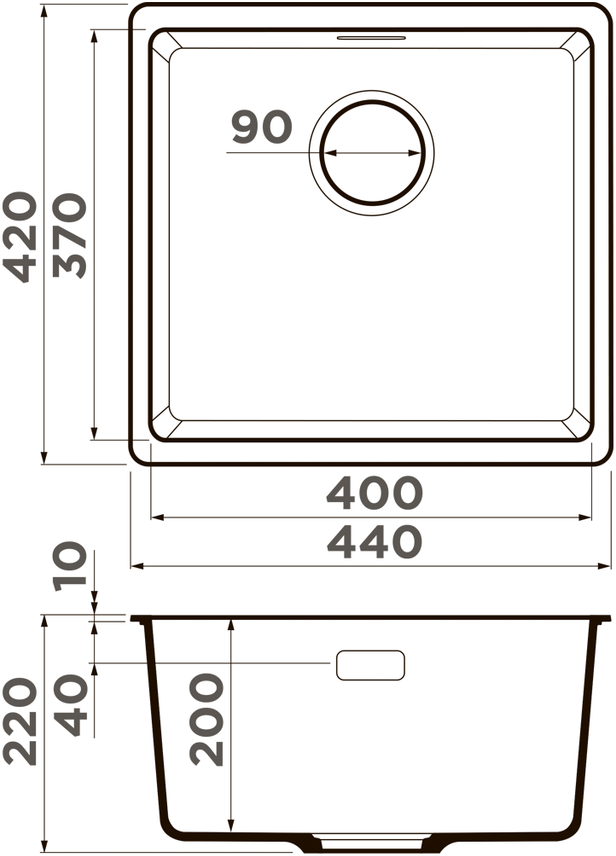 Мойка черного цвета размерами 44 х 42 см (ширина х глубина) имеет одну чашу и относится к необорачиваемым моделям. Раковина устанавливается в строго фиксированном положении, которое указано в схеме инструкции по эксплуатации. Оборудование квадратной формы не имеет крыла, выглядит лаконично и гармонично вписывается в интерьеры модерн, хай-тек и лофт.
