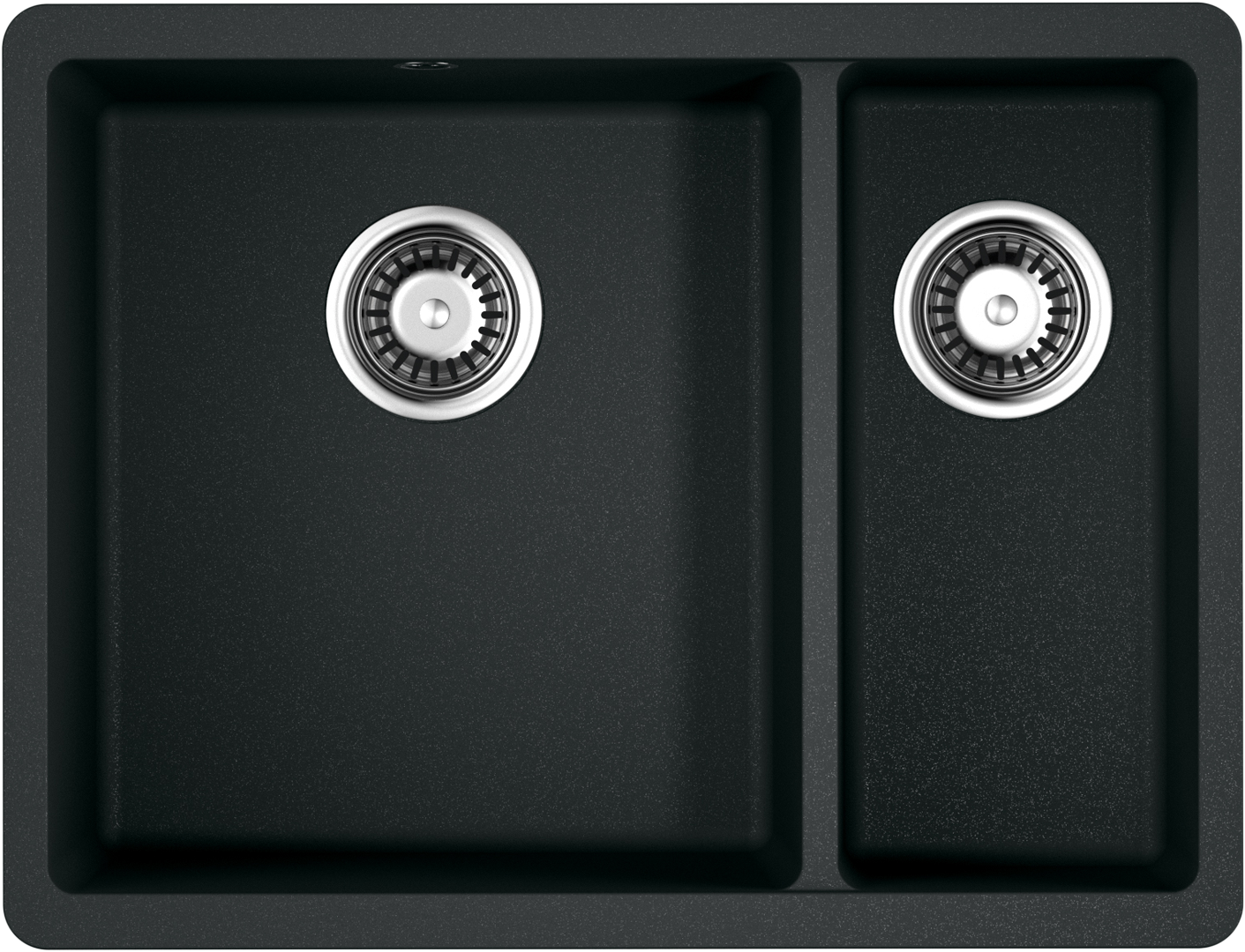 Великолепная модель с двумя чашами (одна – широкая, вторая – узкая) прекрасно впишется в столешницу любого цвета. Мойка выполнена из черного артгранита – материала, состоящего из окрашенного при 600 градусах кварцевого песка, гранитной крошки и полимера, а также запатентованного защитного комплекса, содержащего ионы серебра. Их присутствие в составе артгранита позволяет предотвратить размножение бактерий и грибков на поверхности мойки. Артгранит проявляет устойчивость к высоким температурам, царапинам, химическим веществам, так что его можно назвать идеальным материалом для кухни.