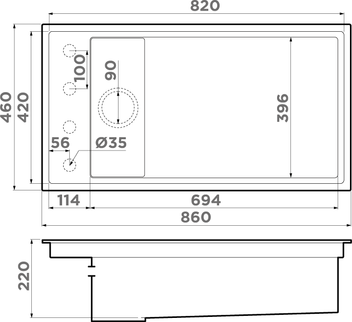 Размер чаши, мм: 694x396