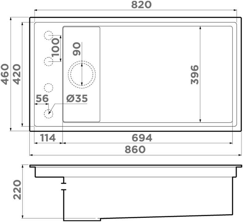 - Отверстие под смеситель Нет