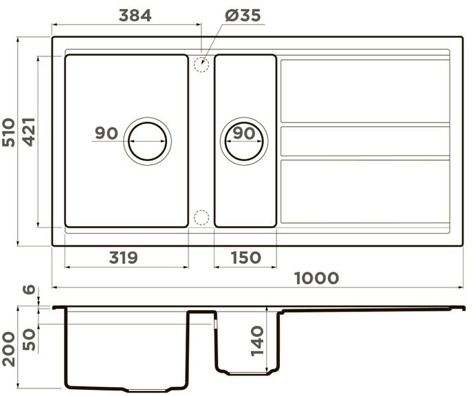 Размер чаши, мм: 319x421 / 150x421