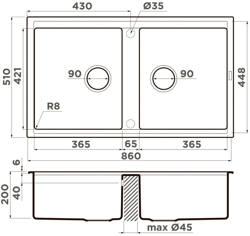 Размер чаши, мм: 365x421 / 365x421