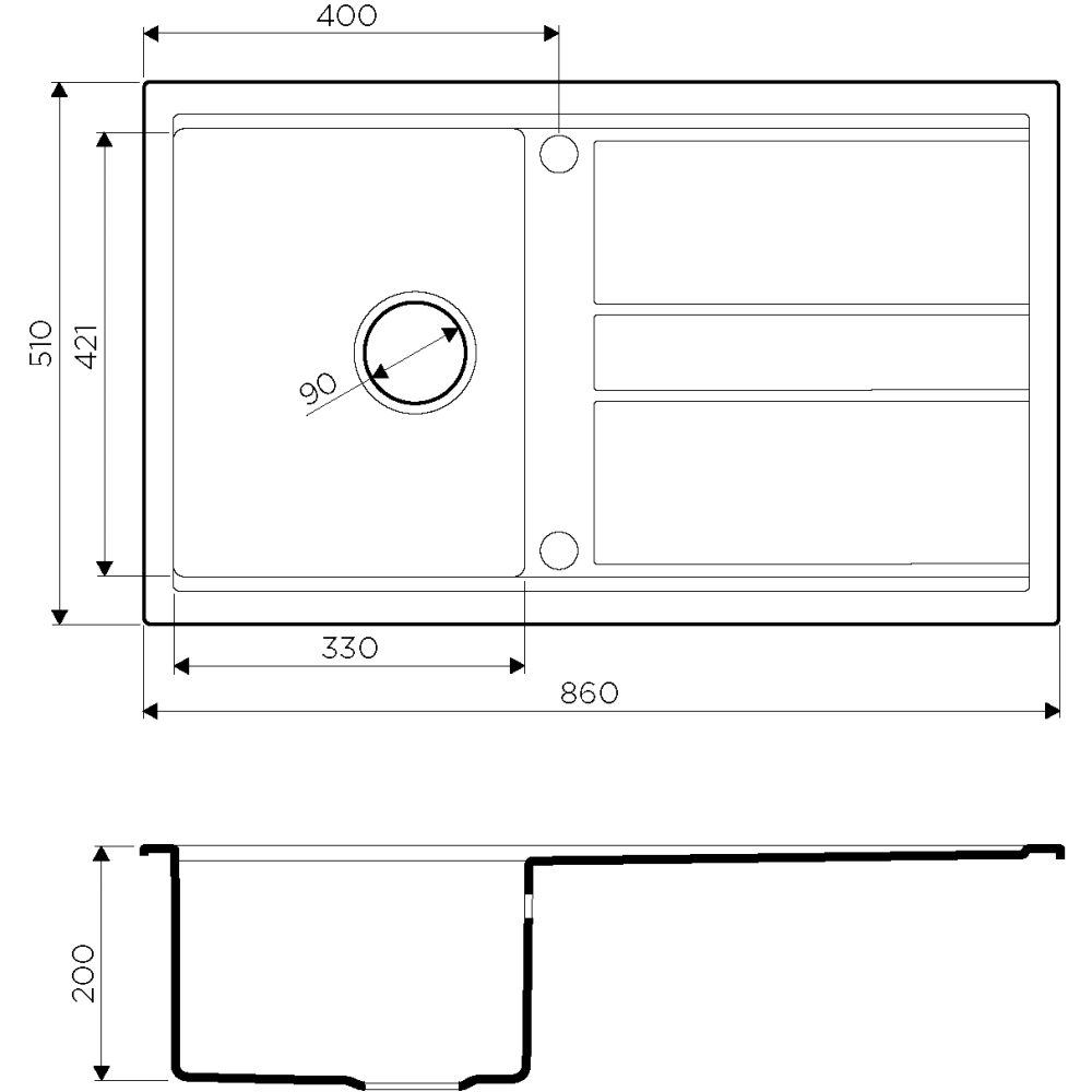 - Диаметр слива 3 ½” (90 мм)