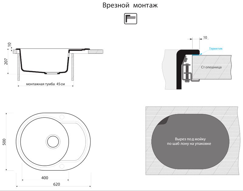 Установка: врезная