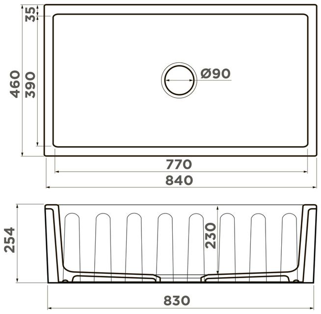Размер мойки: 840x460