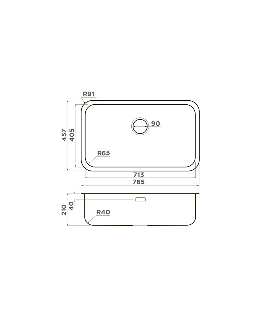 - Диаметр слива 3 ½” (90 мм)