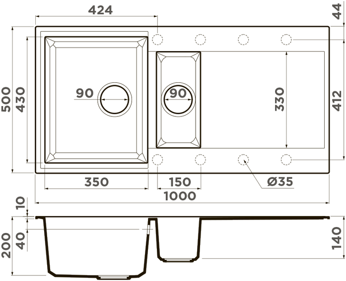 Глубина чаши: 200/140