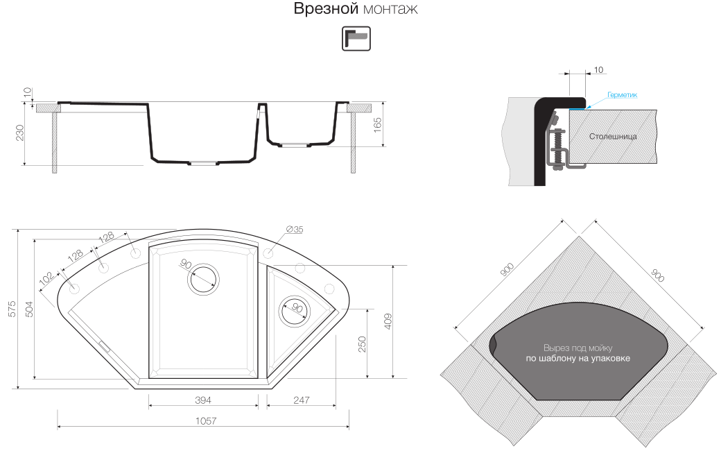 - Материал Искусственный гранит