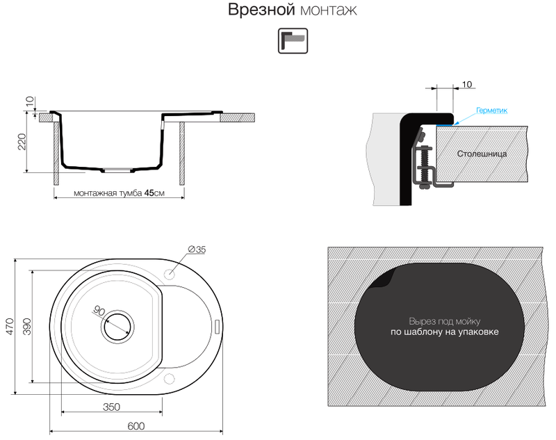- Материал Искусственный гранит
