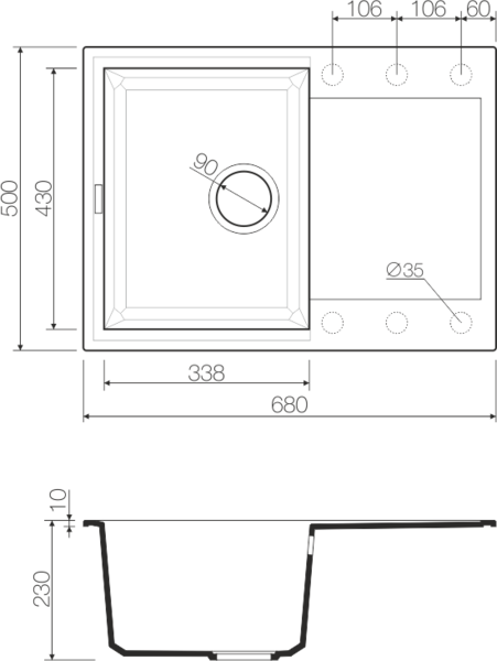 - Отверстие под смеситель Нет