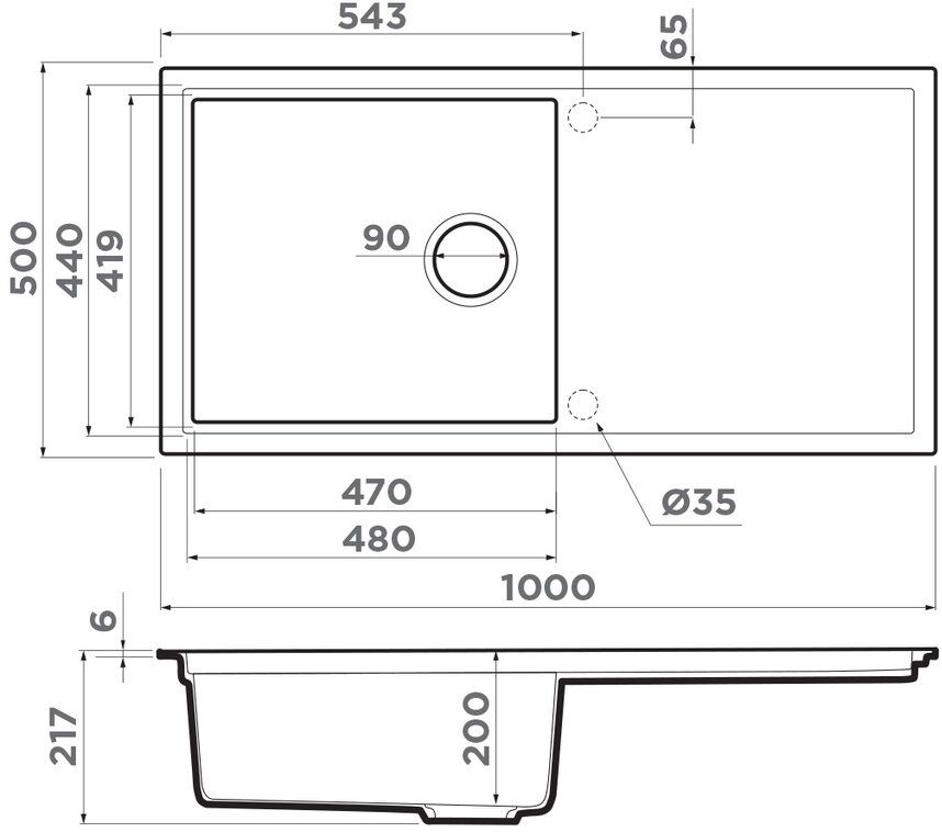 - Отверстие под смеситель Нет