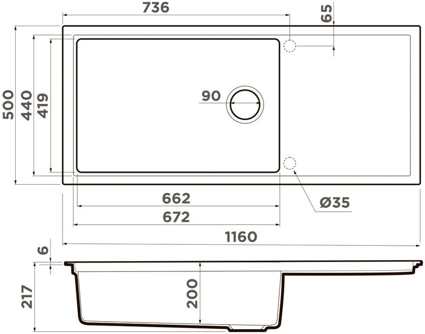 - Отверстие под смеситель Нет