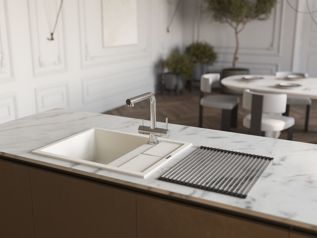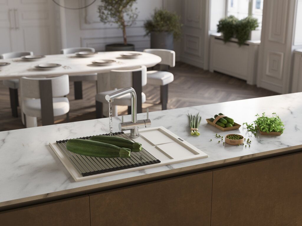Непористый материал Artceramic по всей глубине способен отталкивать частицы грязи и воды, а специальное защитное покрытие делает мойку совершенно невосприимчивой к загрязнениям. Мойки из Artceramic абсолютно гигиеничны и инертны.