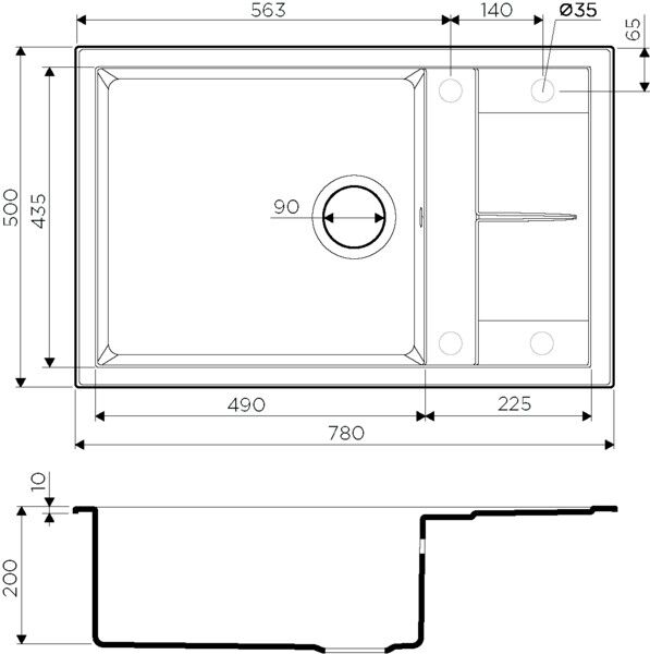 - Отверстие под смеситель Нет