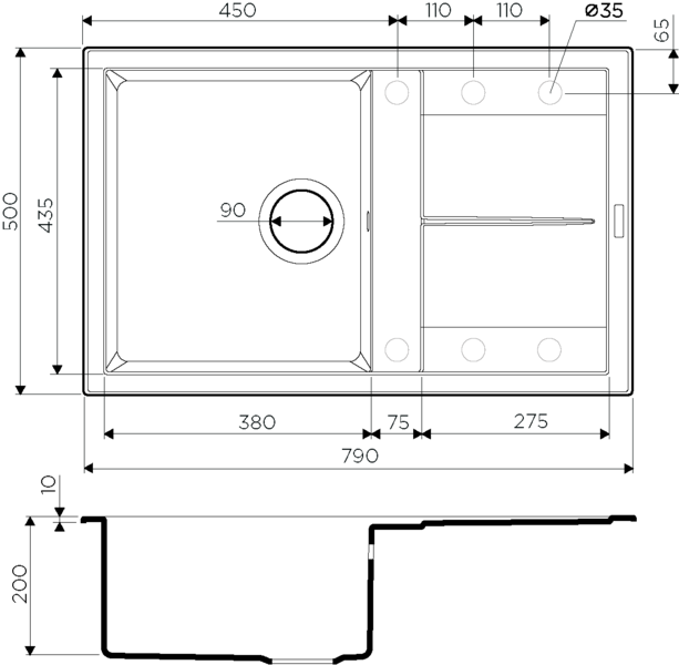 - Отверстие под смеситель Нет