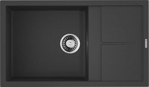 Это добротная, стильная и удобная мойка из долговечного материала. Литая конструкция изготовлена из искусственного гранита черного цвета, толщина стенок составляет 10 мм, при этом вес изделия – чуть больше 8 кг. Материал TETOGRANIT – эксклюзивная разработка японского бренда, он представляет собой устойчивый к механическому и физическому воздействию композит. Кроме мелкофракционного минерального наполнителя и акриловой смолы в состав искусственного гранита входят ионы серебра, которые придают поверхности мойки антибактериальные свойства. Композит довольно трудно поцарапать, он не плавится и не выцветает, вы можете смело ставить на боковую рабочую зону горячую посуду или использовать ее поверхность для мытья овощей. Черный цвет мойки не потускнеет со временем или от воздействия солнечного ультрафиолета.