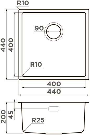 - Диаметр слива 3 ½” (90 мм)
