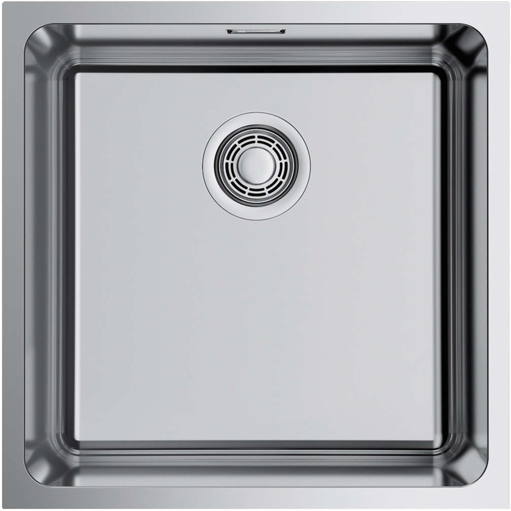 Кухонная мойка квадратной формы имеет размеры корпуса 440 х 440 мм, чаши 400 х 400 мм и глубину 200 мм. Раковина монтируется под столешницу и относится к необорачиваемым. Для изготовления выреза в столе следует воспользоваться лекалом, которое входит в комплектацию.