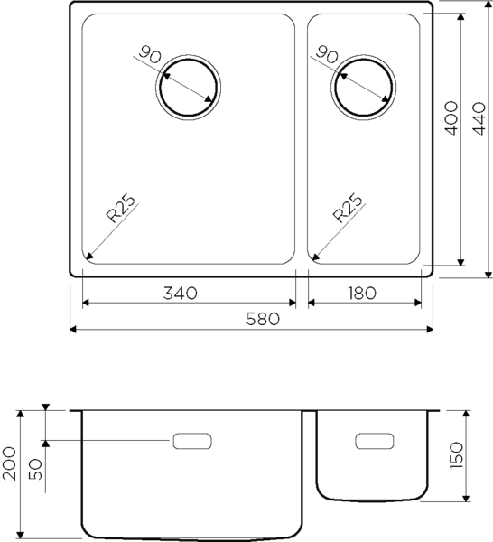- Отверстие под смеситель Нет