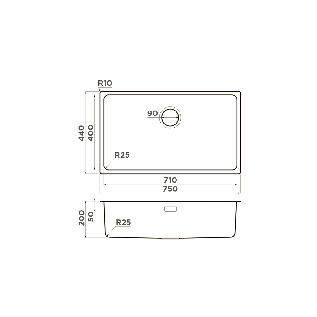 - Диаметр слива 3 ½” (90 мм)