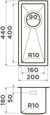 Вырез под мойку: 40 x 16 см