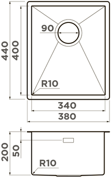 - Отверстие под смеситель Нет