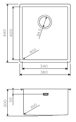 Размер монтажного отверстия под мойку (ШхГ): 34x40 см