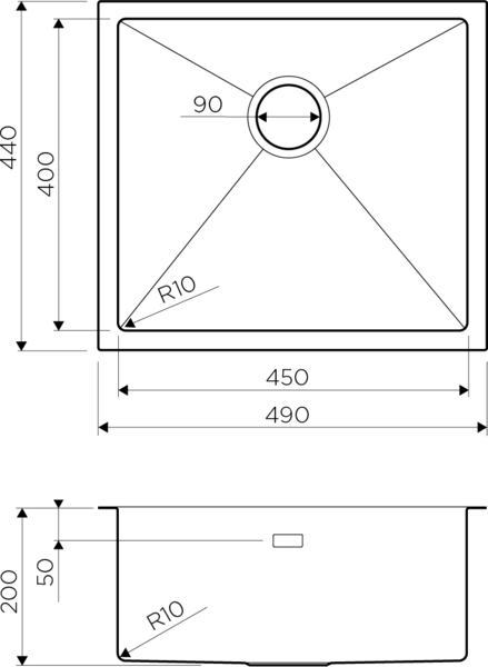 - Отверстие под смеситель Нет
