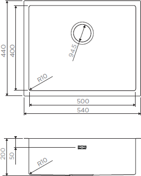 Размер монтажного отверстия под мойку (ШхГ): 50x40 см