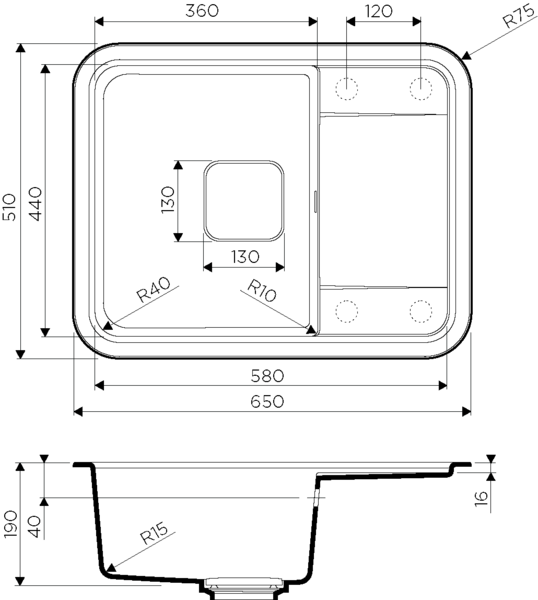 - Материал Искусственный гранит
